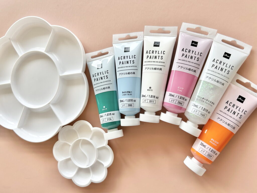 わたしは淡い色が好みなので (完全にママ好み) 今回はそれぞれの絵の具に “白” をまぜて色を作ってみました!
